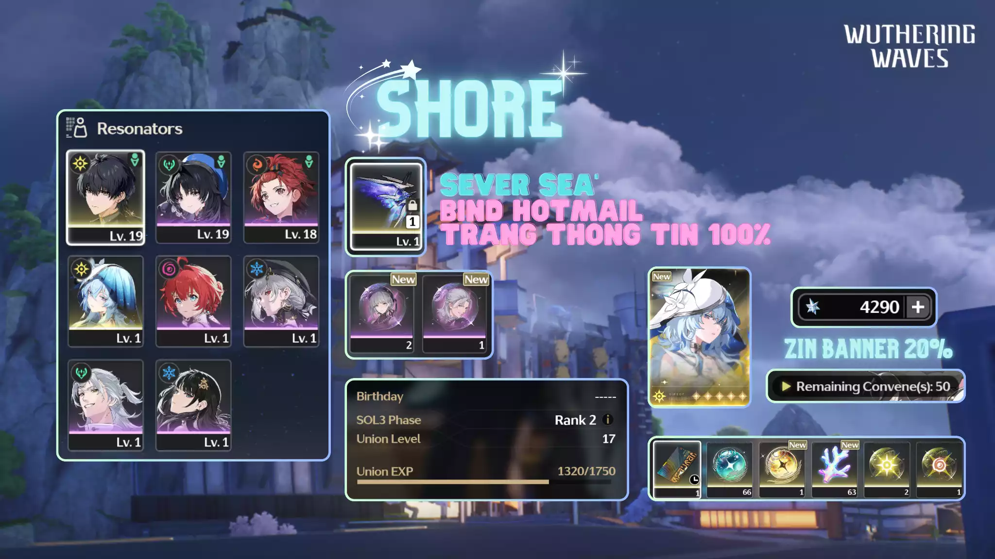 #116561: (SEA) UL8 Zani Trấn + Phoebe + Shorekeeper Trấn + Verina + Encore(Zin Map, Zin nhiệm vụ) 500,000đ Mua